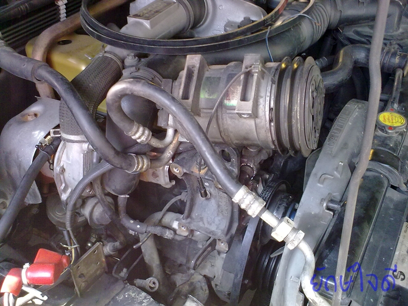 เช้ามา ด้วยลางสังหรณ์ เลยไปสตาร์ทรถจะออกไปลองดู น่าน อาการเดิมเลย แอร์ดับไฟติด แอร์ติดไฟดับ ปิดคอมเมื่อไรอาการหายไป ทำไงล่ะ กลับไปร้านซิครับ เล่าให้ช่างเทวดาฟังอีกที คราวนี้ถึงได้มาก้มๆเงยๆดูที่หน้าเครื่อง แล้วตัวการก็ปรากฏ พูเล่หน้าเครื่องนี่เอง ... ยางพูเล่หน้าเครื่องขาดครับ ทำให้กำลังที่จะไปหมุนสายพานต่อไปยังได พวงมาลัยพาวเวอร์ ฯลฯ ไม่มีแรงมากพอ ไดก็ฟ้อง แอร์ก็ตัด จัดการรื้อออกเปลี่ยนพูเล่ซะ ก็จบข่าว แล้วก็อย่างที่ว่า อาการเบรคแล้วด้บตอนเช้ามันก็พลอยหายไปด้วย ตกลงมันเกี่ยวกันไม๊เนี่ย