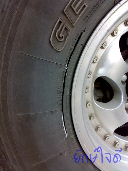 อย่างที่สาม อันนี้ร้ายแรงมาก ดูตามรูปได้เลย ยางเส้นนี้ไม่เก่านะครับ เปลี่ยนใหม่ แล้วตอนฉีกเนี่ย อายุเพียงแค่ปีนิดๆเท่านั้น อยู่ดีๆมันฉีกในตำแหน่งที่ไม่ได้ไปปีนหรือไปเฉี่ยวอะไร ฉีกเป็นรอยตามร่องอย่างสวยงาม เล่นเอาประสาทเสียไปเหมือนกัน ยางดีๆทำไมเป็นแบบนี้ไปได้นะ