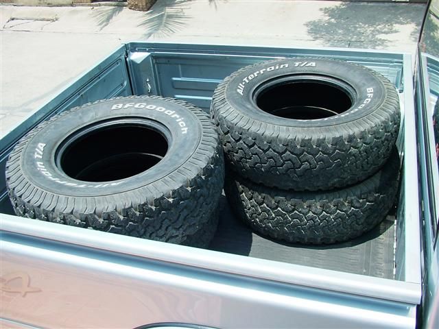 ด้วยความอยากลอง อยากหล่อ เลยลองหาซื้อยางมือสอง BF GOODRICH มาลองใช้ ก็ได้มา4เส้น กลางปีนี้(2013) แต่ยางมันปี 2007 แต่ตอนซื้อ สภาพดอกยางหนา ดอกเยอะ สัก6-7 มม.ได้ หนวดยังมี แต่ร่องยางก็แตกลายงาแล้ว 4เส้น 7500 ยาง 31*10.5*15