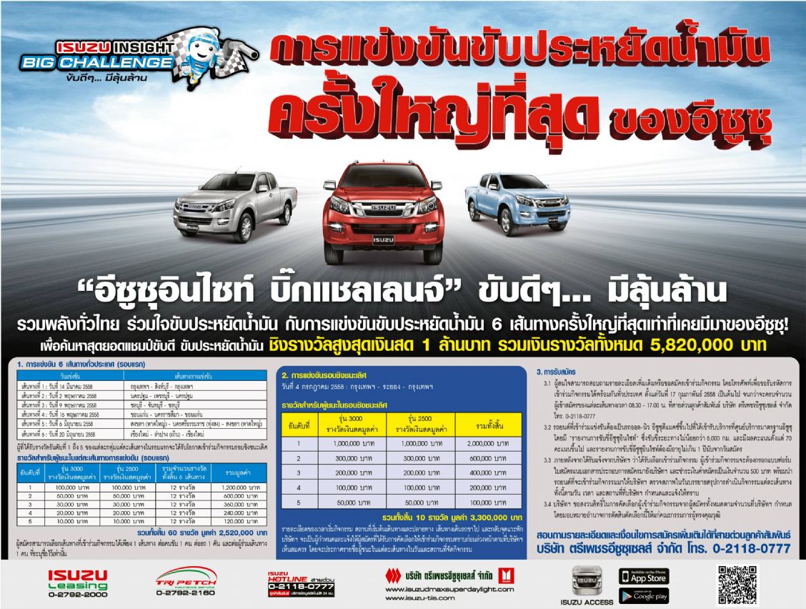 บริษัท ตรีเพชรอีซูซุเซลส์ จำกัด ได้จัดกิจกรรมการแข่งขันประหยัดน้ำมันครั้งใหญ่ที่สุด ของอีซูซุ ในชื่อโครงการ