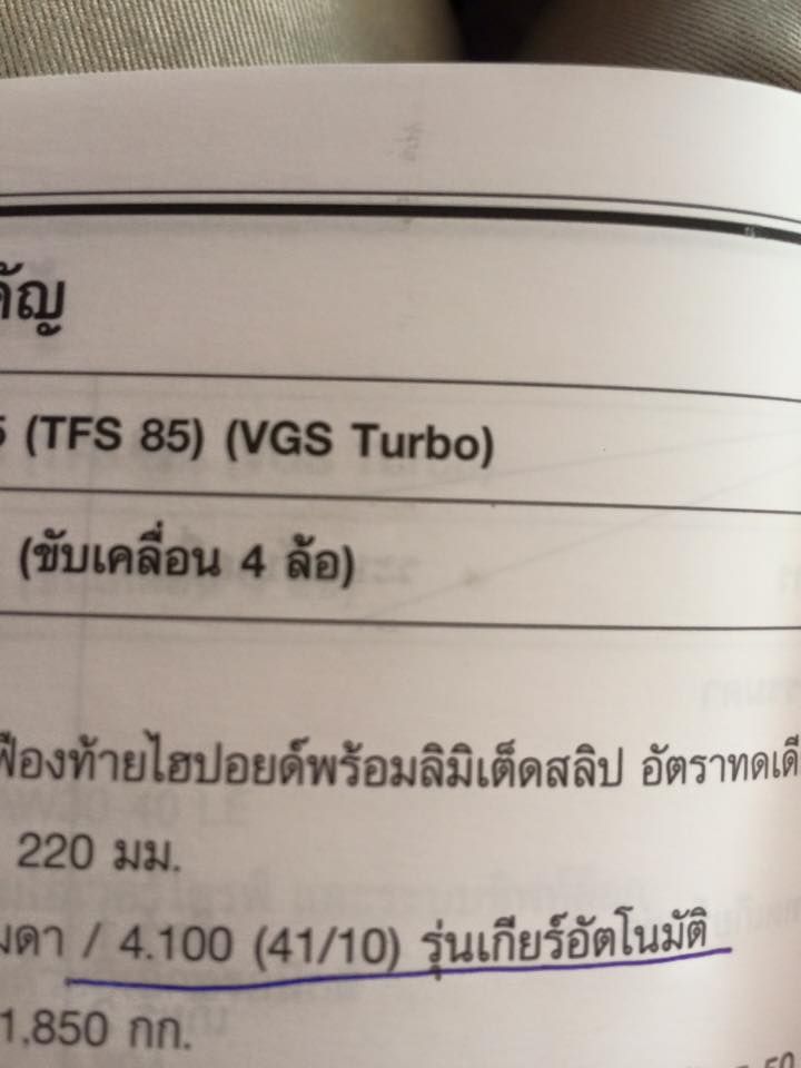 อัตราทดเฟืองท้าย Vga 3.0 Auto