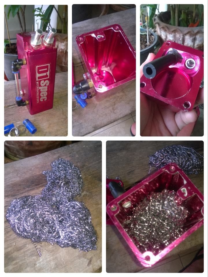 ส่วนของผมนะ DIY เอง ใส่ฝอยขัดหม้อเข้าไป ต่อท่อไอน้ำมันให้ลึกอีกหน่อย เพื่อให้ ไอน้ำมันปะทะกับฝอยฯ พอที่จะดักจับมันได้บ้าง แลัให้ตกอยู่ก้นกระป๋อง ดีกว่าที่จะดูดแบบโล่งๆ 555............ลองไปหาซื้อดูเอาแบบที่มันเปิดฝาได้ครับผม