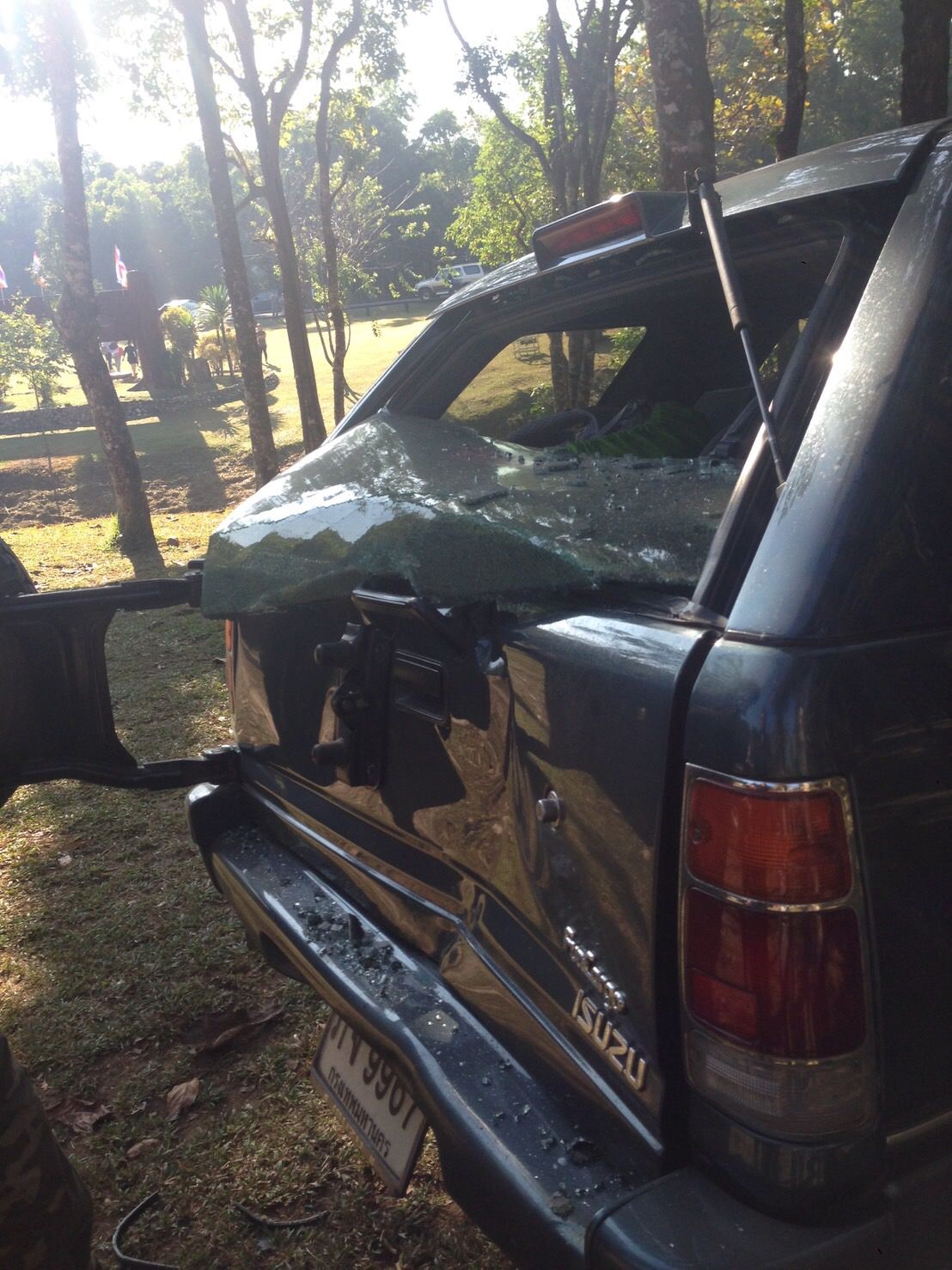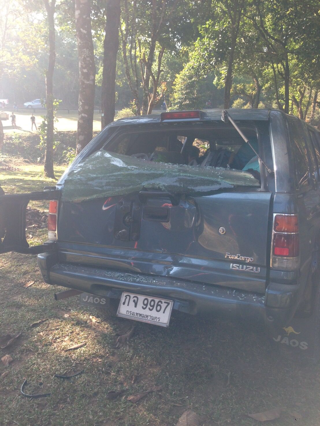 บาดเจ็บมาครับ ที่ อช.เขาช้างเผือก ต้นไม้ไม่ยอมลบ (ประมาทไปหน่อย ของเต็มหลังรถมองไม่เห็นเขาเหลี่ยมสนุ๊ก)
