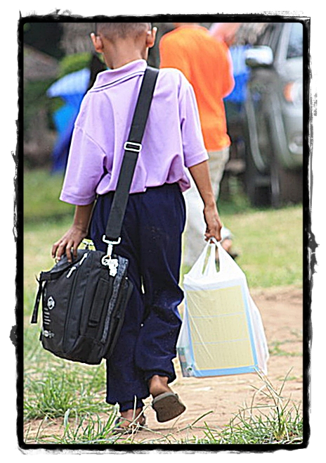 ในห่อพลาสติกนั้นคือหลอดไฟที่ร่วมนำไปบริจาคมอบให้ รร. ครับ