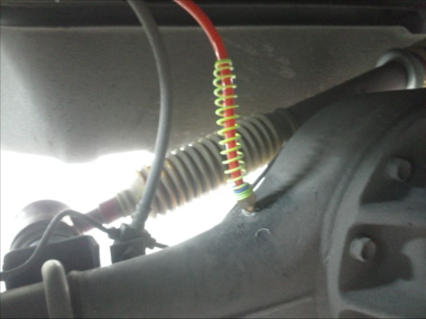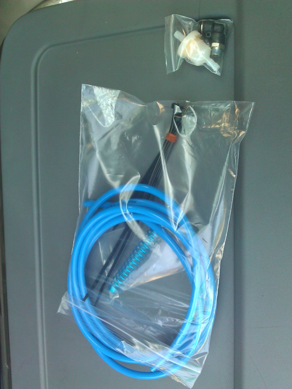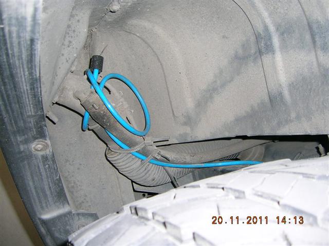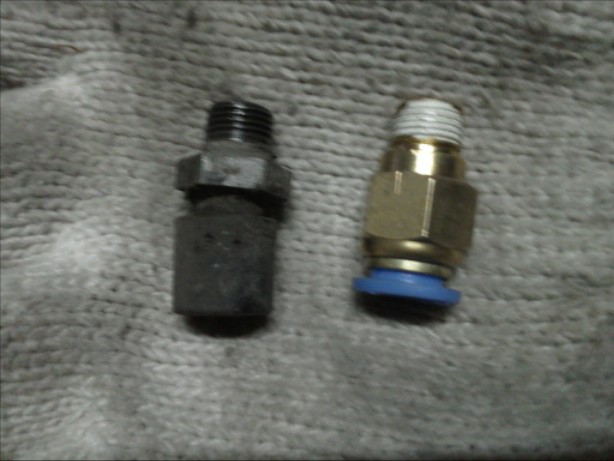 ก็จัดการทำเอง รถสูงพอลอดเข้าไป เอาปากตายเอบร์14 ขันออก แล้วใส่ตัวฟิตติ้ง ขันแน่นตึงมือ แล้วกดสาย PUเข้าไป เผื่อความยาวตอนยืดตัวแบบกะเอา ทำแบบง่ายฯ พอดีลืมซื้อ เคเบิ้ลไท เลยรัดแค่เส้นเดียว