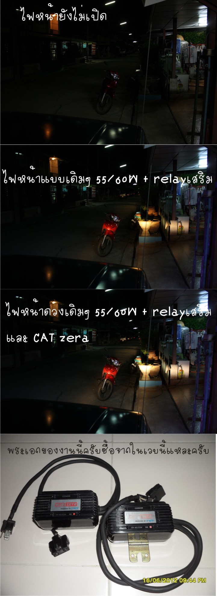 5. ใส่ชุด ไม่รู้เรียกว่าอะไร ของ Car zera สว่างขึ้นพอสมควร แต่ต้องสลับสาย + , - ของชุดรีเลย์ เสริม ถ้าไม่สลับหลอดจะไม่ติดเลยครับ