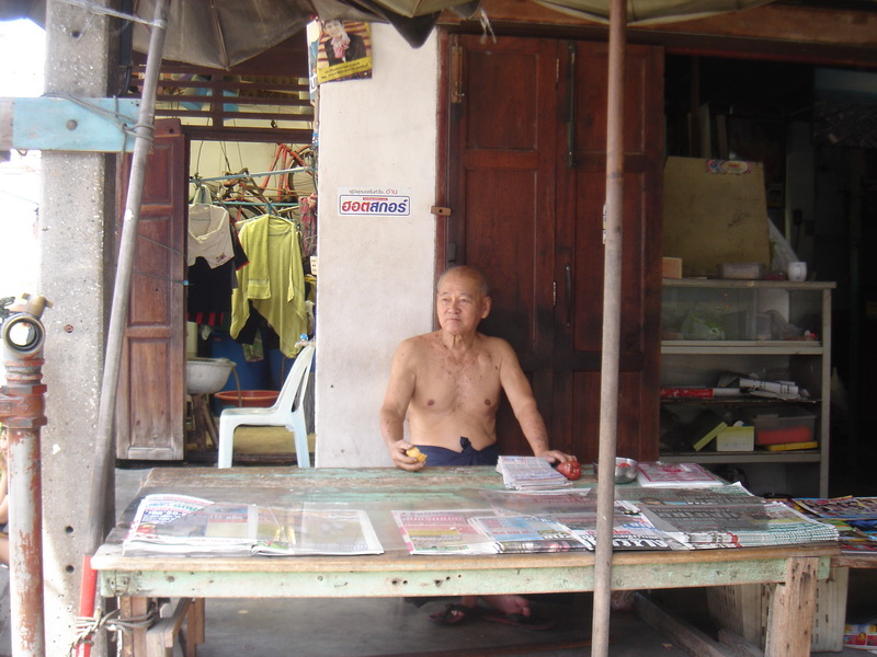 อาแป๊ะนั่งขายหนังสือพิมพ์ท่าทางเป็นคนใจดี