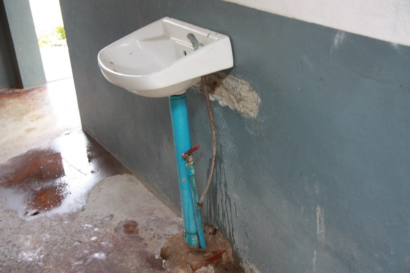 อ่างน้ำล่างมือ อ่างหน้า ที่ก๊อกน้ำแตกหัก เด็ก ๆ ไม่มีก๊อกน้ำไว้ใช้กัน