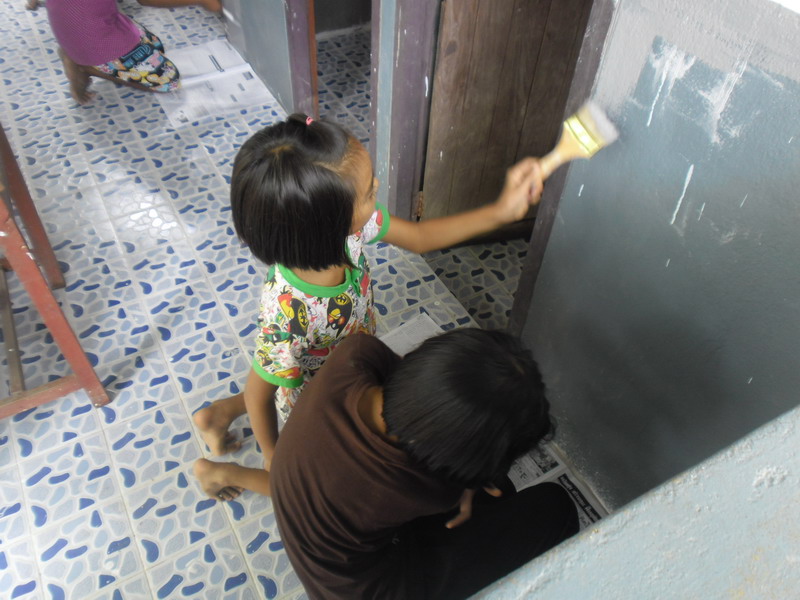 เราไปใช้เเรงงานเด็ก ๆ 555 เด็ก ๆ มาร่วมกันทาสี มาทำเลอะเทะ มาช่วยเละเทอะ