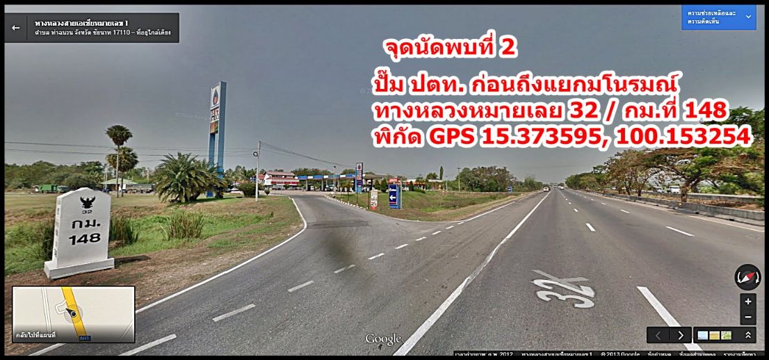 จุดนัดพบที่ 2 ปั๊ม ปตท. ทางหลวงหมายเลข 32 หลัก กม.ที่ 148 ก่อนกึงแยกมโนรมณ์
