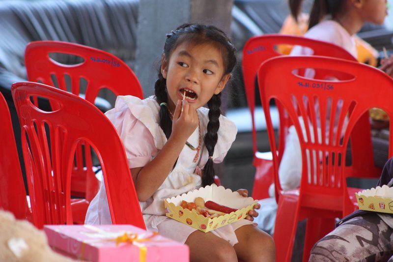 เงินจำนวนนี้เราได้นำไปจัดหาชุดนักเรียนมอบให้เด็กทุกคนจำนวน 41 คน หารองเท้า 1 คู่ที่มีขนาดพอดีให้แก่เด็กนักเรียนหญิงคนหนึ่งที่ไม่มีรองเท้านักเรียนใส่มาโรงเรียน เบาะรองนอนสำหรับเด็กอนุบาล 10 ชุด และจัดซื้ออาหารที่เด็กชาวเมืองคุ้นเคย แต่เด็กชาวชนบทไม่เคยลิ้มรสเพียงแต่ได้เห็นและรู้จักทางทีวี