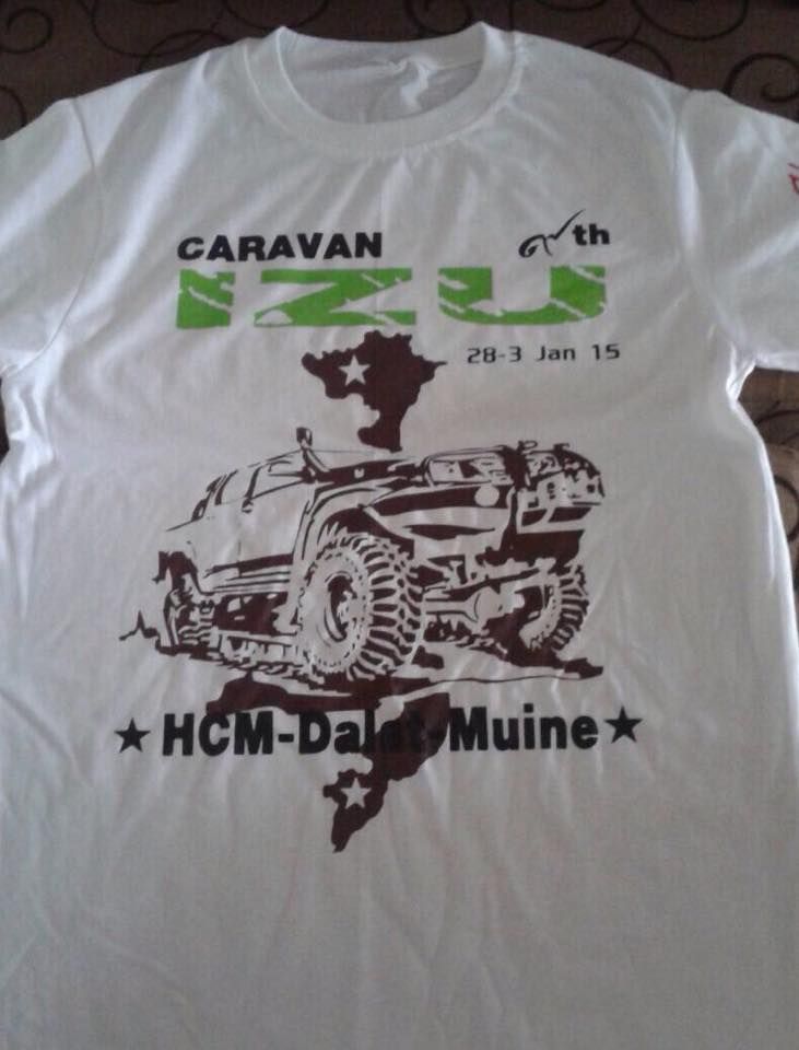 เหมือนทุกๆ ทริป เราจะมีเสื้อ T-shirt เป็นเครื่องหมายของการเดินทาง สวมใส่เพื่อให้เห็นเด่นชัดมองหาง่าย ดูสวยงามเป็นระเบียบ ปีนี้ผมต้องเตรียมการล่วงหน้านานกว่าครั้งก่อนๆ เพราะตังแต่เดือน พฤศจิกายนเป็นต้นไป ผู้รับทำเสื้อจะมีงานมากมายจากลูกค้าอื่นที่เตรียมต้องรับเทศกาลปีใหม่ ผมจึงต้องเตรียมการแต่เนิ่นๆ 4 ตัวเสื้อคาราวาน และอีก 2 ตัวเป็นเสื้อจากสปอนเซอร์ครับ ทั้งหมด 6 ตัวต่อท่าน