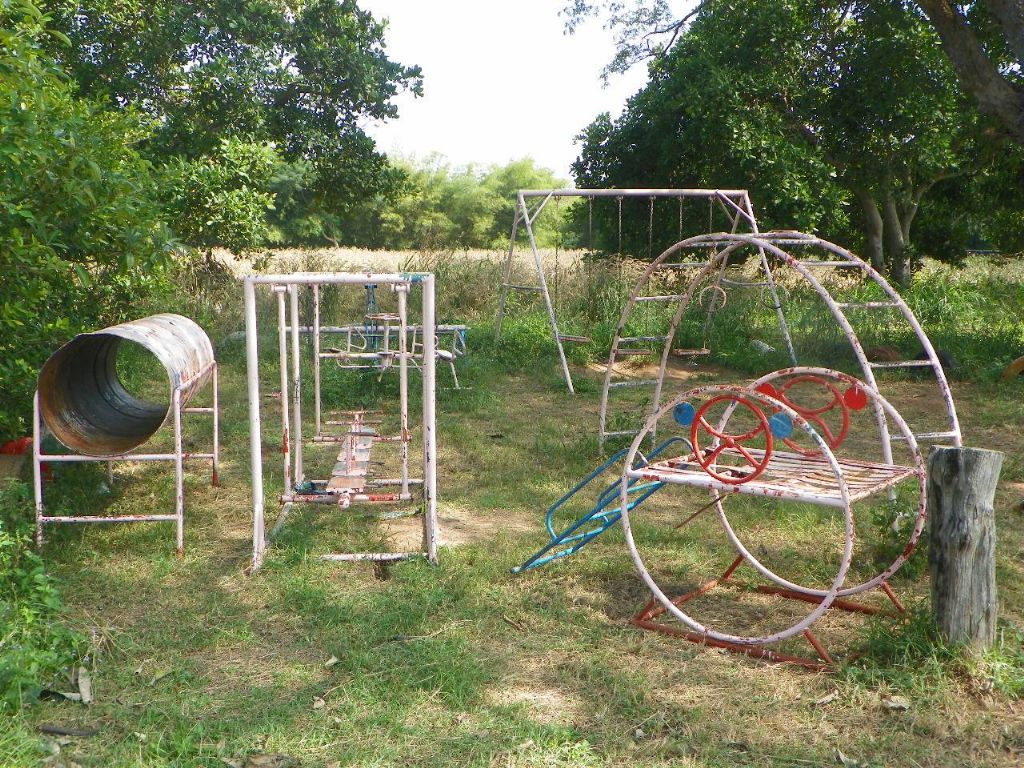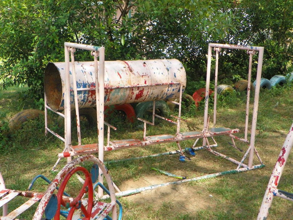 บางส่วนของเครื่องเล่นเด็กมีสภาพอย่างที่เห็น
