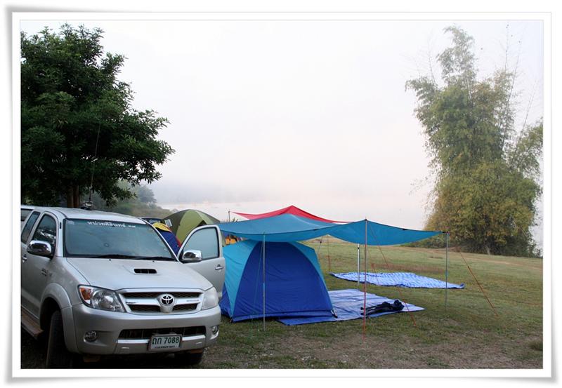 ที่จุดพักแรม ผู้ใหญ่ณรงค์ได้แจ้งจองไว้ 2 หลัง แถมตอนเย็นผู้ใหญ่บ้านให้ลากแพมาไว้อีก 1 แพ แต่ที่จริงแล้ว สมาชิกเราส่วนใหญ่ชอบกางเต็นท์เพื่อรับบรรยากาศกันมากกว่า เพราะมีผู้ที่กางเต๊นท์บนบ้านเพียง 4 เต็นท์เท่านั้น