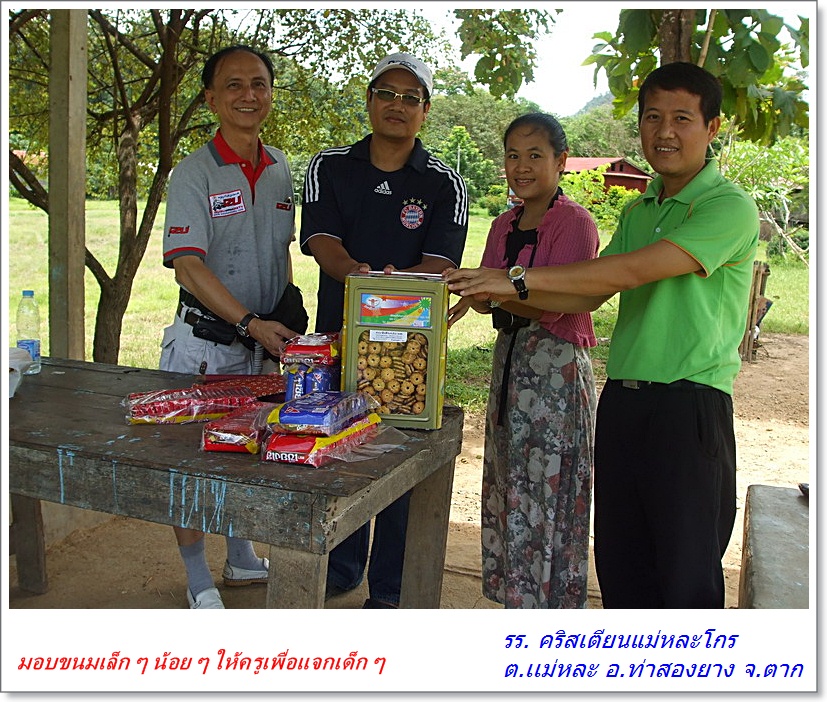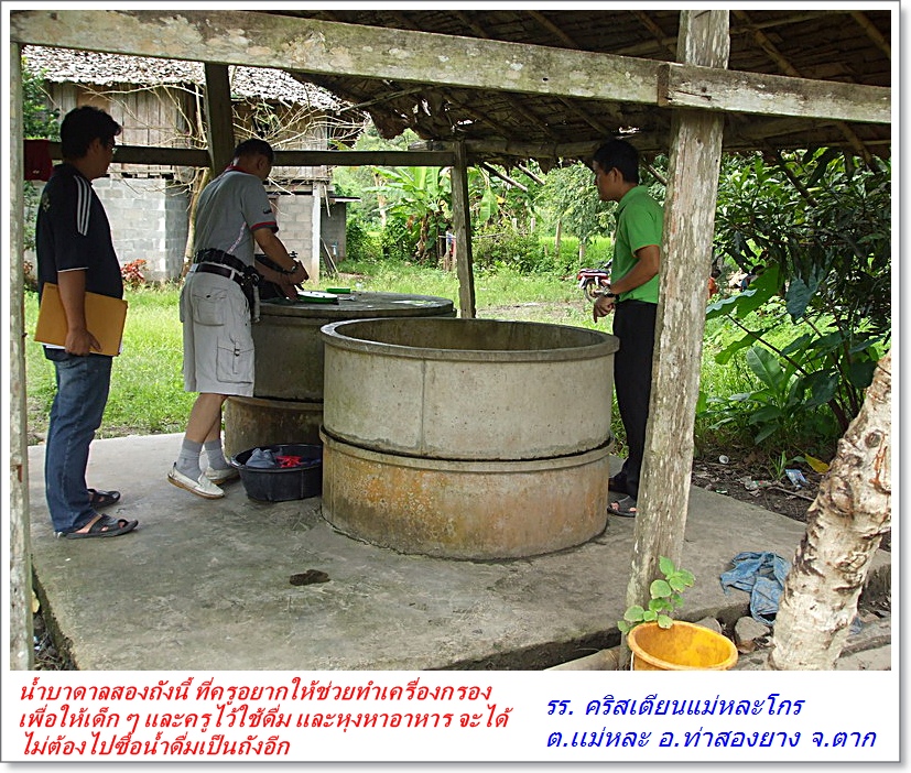 เนื่องจากโรงเรียนคริสเตียนแม่หละโกร อยู่ที่ อ.ท่าสองยาวได้รับความเดือนร้อนขาดน้ำดื่ม เนื่องจากไม่มีระบบน้ำดื่มที่ดี ประกอบกับหน้าน้ำมากทำให้น้ำในลำธารขุ่นแดง ซึ่งคุณเวช (รังสิต) เป็นผู้แจ้งข่าวขอความช่วยเหลือจากทางโรงเรียนให้ทราบ ซึ่งเราได้นำเรื่องนี้มาพิจารณาให้ความช่วยเหลืออย่างเร่งด่วน เพราะมีเด็กนักเรียนจำนวนมาก และจัดเป็นที่พักให้นักเรียนด้วยเนื่องจาก เด็กนักเรียนที่นั้นหลายคนต้องเดินทางมาจากหมู่บ้านที่อยู่ห่างไกล