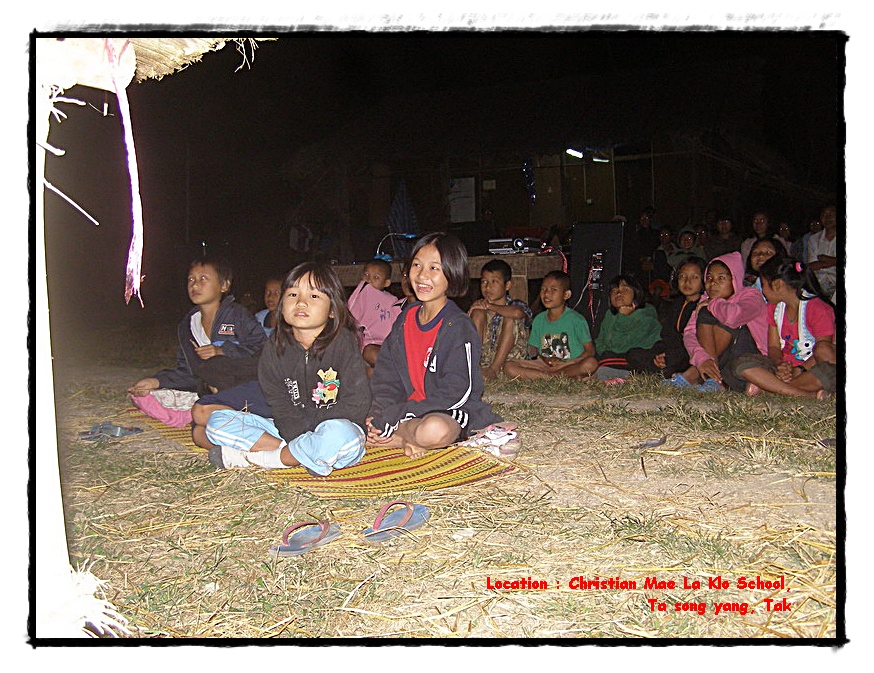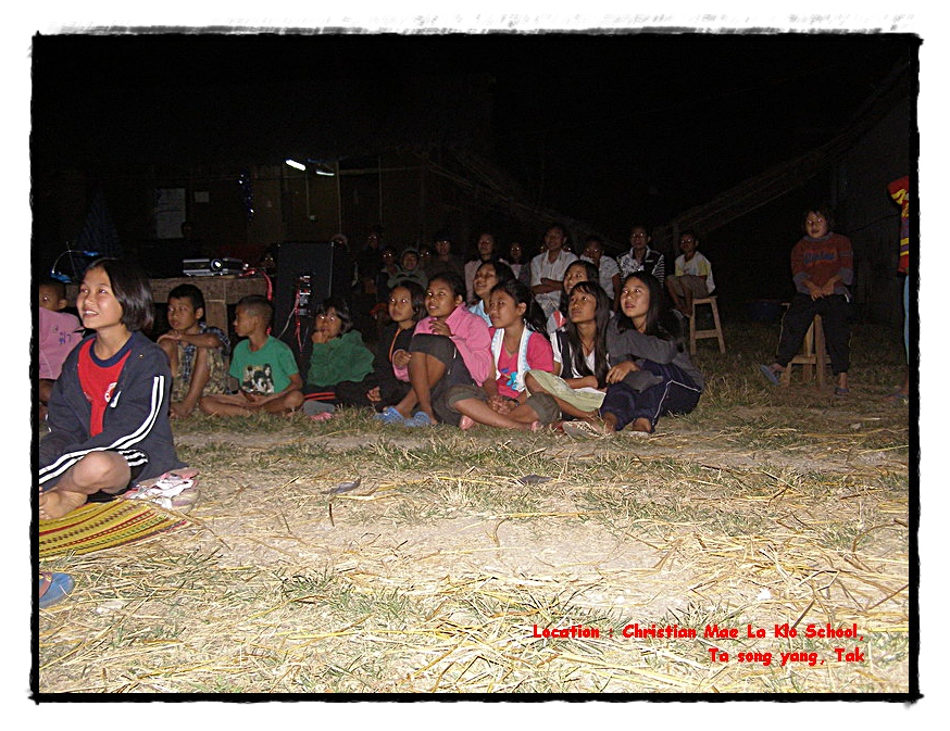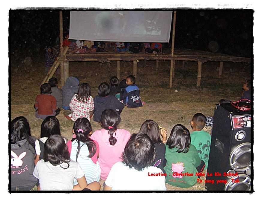และในตอนกลางคืน เราได้ฉายหนังให้เด็ก ๆ ที่ รร. ได้ดู 1 เรื่อง สองภาคตามที่บอกไว้ข้างต้น