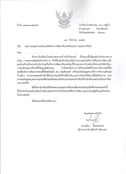 จดหมายขอรับความอนุเคราะห์ จากโรงเรียน