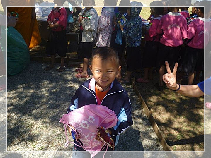 โดยพยายามหาสิ่งของ ไปเเจกให้เด็ก ๆ อยู่เสมอ