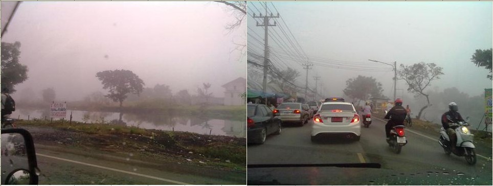 พอเข้าทางด่วนวงแหวน หมอกเต็มเลย เจอรถชนกันรถติดอีก ...อะไรกันเนียะ อากาศบ้านเรา