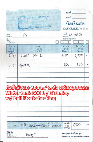 5. ถังน้ำขนาด 600 L จำนวน 2 ถัง 6,000.00