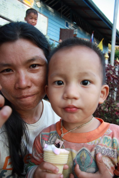 ไอติม ไอติม และไอติม เป็นที่ขายดีมาก ๆ สำหรับเด็ก ๆ บางคน 3 ถ้วย บางคน 4 ถ้วย สูงสุดคนเดียว 5 ถ้วย เป็นอะไรที่นาน ๆ ( มาก ) ที่เค้าจะได้ลิ้มลอง ลิ้มรส ได้ลิ้มสัมผ้สคอซักครั้ง คราวนี้เลยให้เค้าได้กิน ได้ลิ้มรสกันให้เต็มที่ แม้แต่เรื่องอาหารที่เราจัดเลี้ยง ก้อให้เด็ก ๆ ได้กินกันให้เต็มที่ ซึ่งพวกเราเชื่อได้เลยว่า มื้อที่เราเลี้ยงเค้านี้ เป็นมื้อที่เค้าอิ่มมากที่สุด และคงเป็นมื้อที่พิเศษที่สุดของเด็ก ๆ แน่นอน