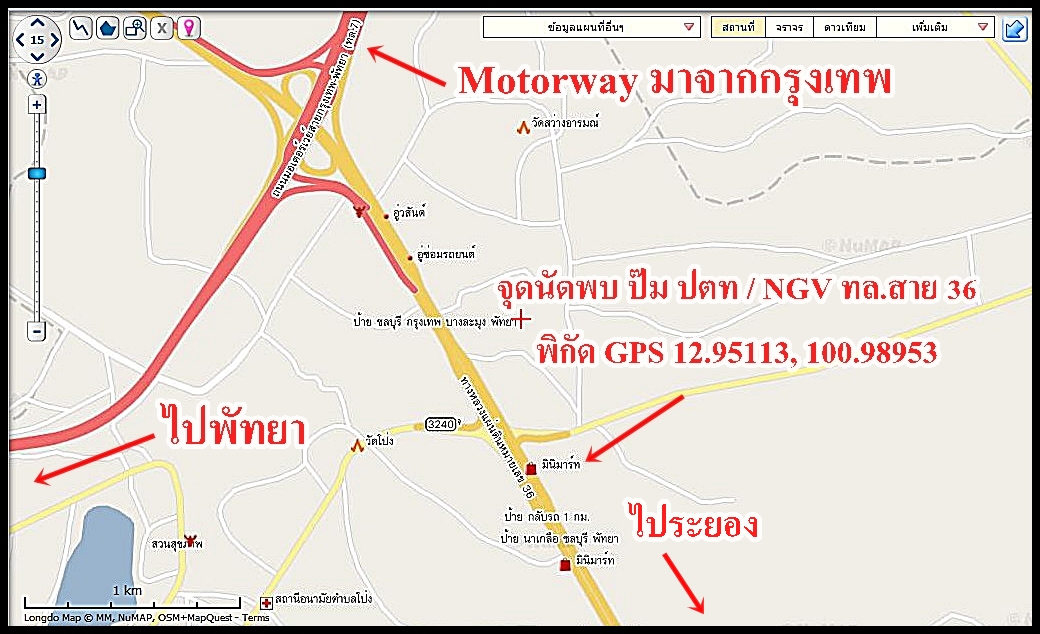 ให้ใช้ทางหลวงหมายเลย 36 มุ่งหน้า จ. ระยอง ปั๊ม ปตท ดังกล่าวจะอยู่ซ้ายมือ