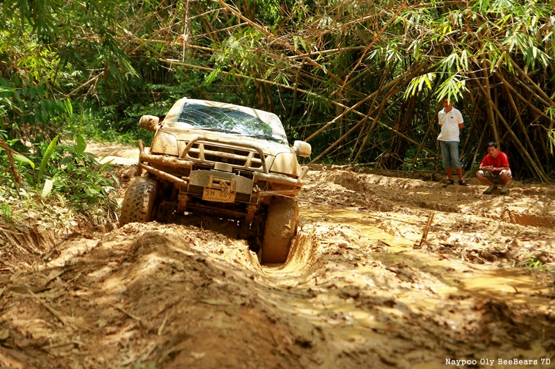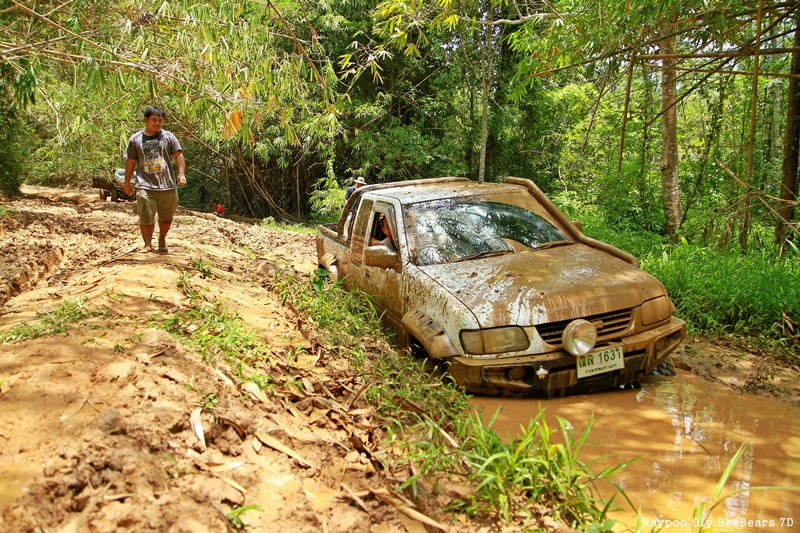 ลงไปทีเดียวจมเลย บ่อนี้เป็นมุมชัน ขึ้นไม่ได้เพราะล้อชน แต่ด้วยหัวใจสิงห์ น๊ามาร์ชยังไม่ยอมแพ้