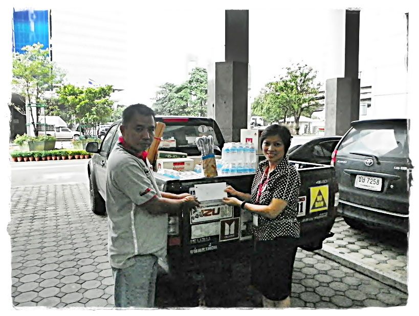 อนึ่ง มีสิ่งของ อาทิเช่น ร่มอีซูซุ สมุด ปากกา มาม่า ผมจะส่งไปให้ครูนะครับ ส่วนน้ำดื่มขอนุญาตินำไปแจกจ่ายช่วยเหลือผู้ประสบภัยน้ำท่วมแทน นะครับ