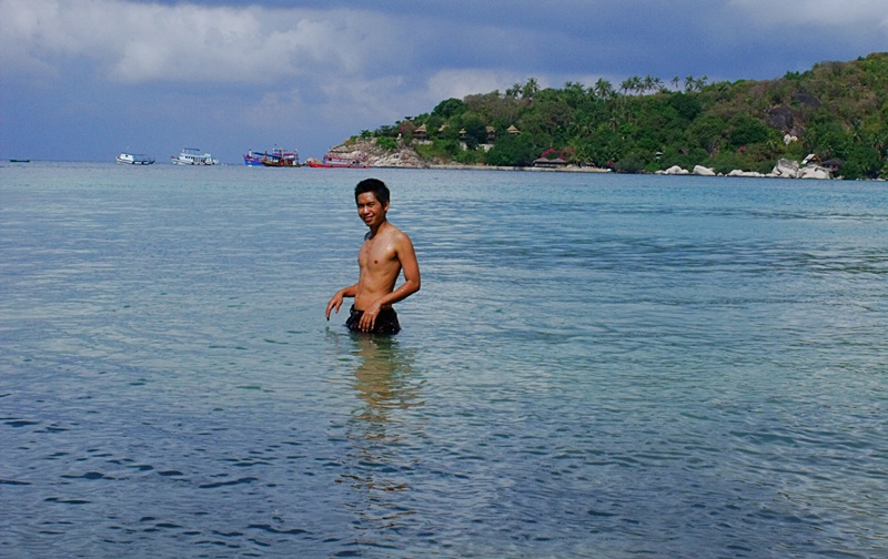 บนเกาะเต่าช่วงกลางวันอากาศจะร้อนแดดจะแรงมาก ต้องระบายความร้อนด้วยน้ำซะหน่อย