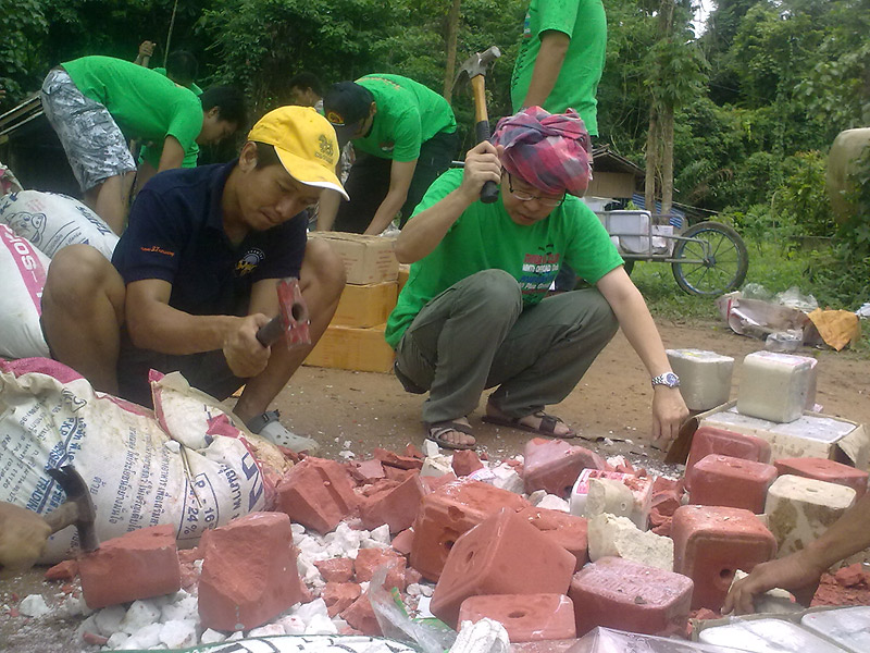 หลังจากทุบแล้วก็ผสมแร่ธาตุกันจนเสร็จแล้วก็มานั่งพักผ่อนคุยกันตามอรรธยาศัย