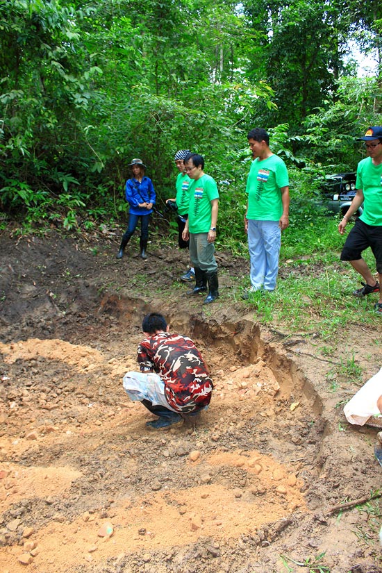 โป่งนี้เป็นโป่งที่สองที่ทำกัน เอาสารอาหารที่ผสมมาคลุกเคล้าดินให้เข้ากัน