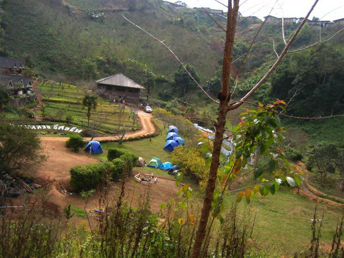บ้านหลวงรีสอร์ทจะอยู่ในหุบด้านล่างเลย.....จะมีลานกางเต้นท์ด้านบนลานแรกถ้าใครกางเต้นท์บริเวณนั้นจะมองลงมาเห็นที่นี่