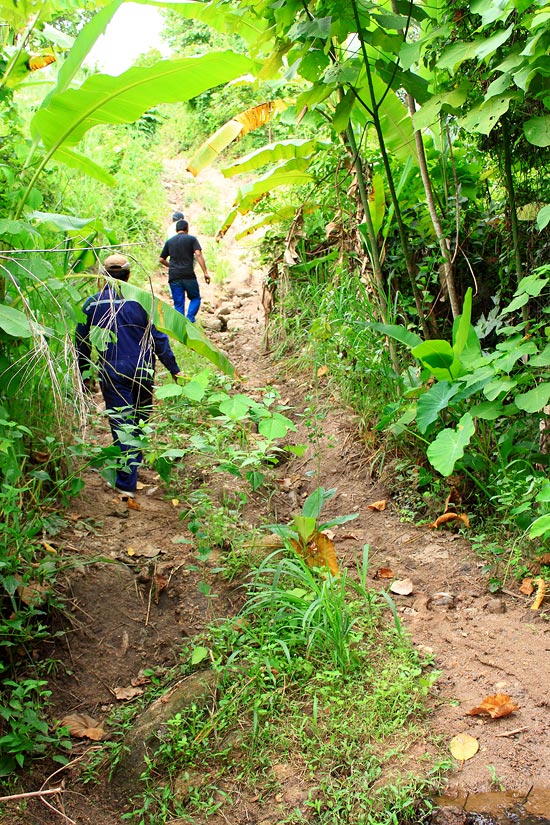 เส้นทางจะเป็นหินลอยมีทั้งก้อนเล็กก้อนใหญ่ ส่วนพื้นจะเป็นดินทราย