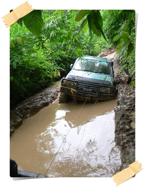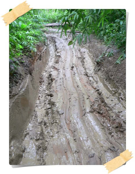 ร่องโคลนมีหินดัก ซ้ายที ขวาที กระดืบๆ ไปเลื่อยๆ