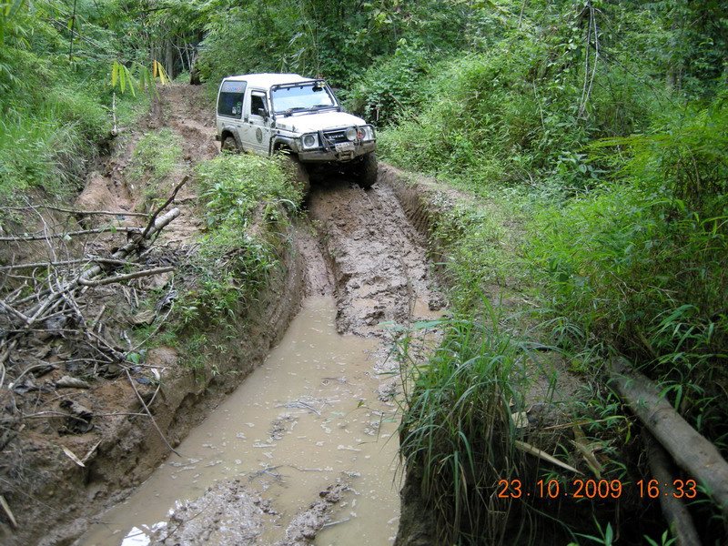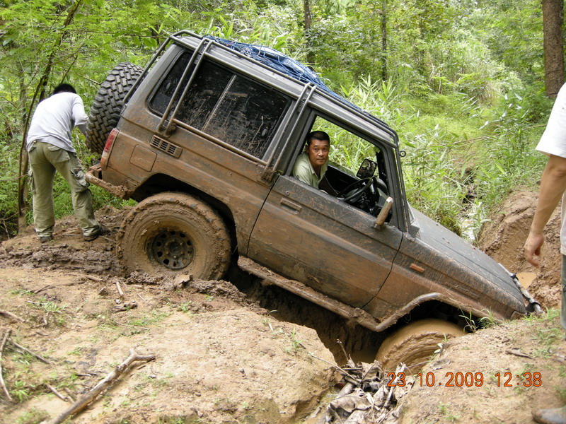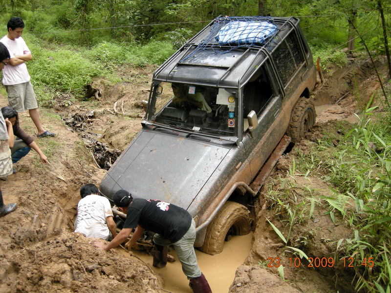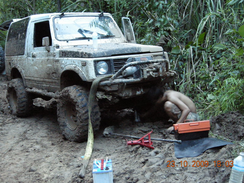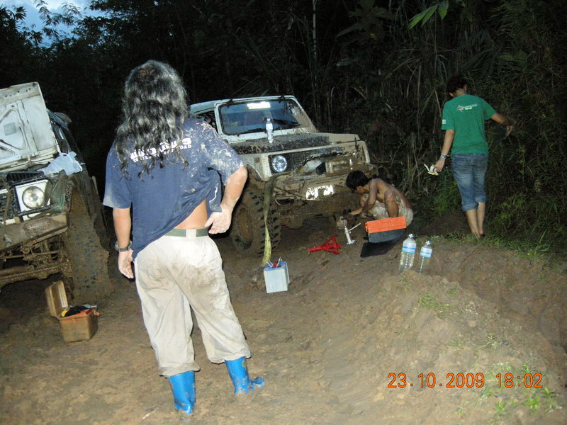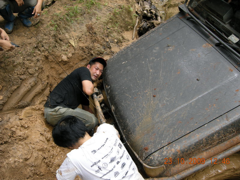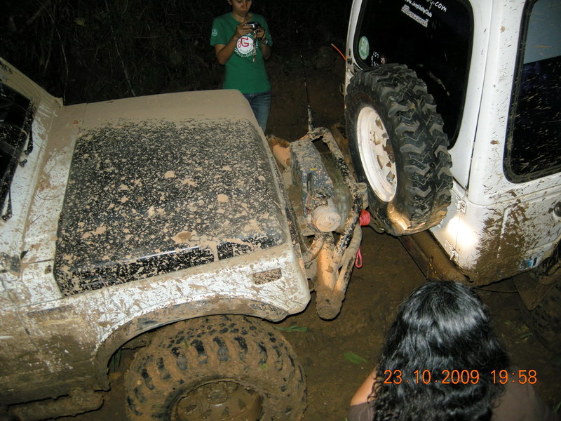 หลังจากจะซ่อมคอม้ากัน แล้วซ่อมไม่ได้ เนื่องจากไม่มีฐานตั้ง แม่แรง แล้วเอาคันชักมาทำลากแข็ง ลากออกมาแต่ล้อดันไม่ไปตามคันลาก จะลงข้างทางอย่างเดียว 555 เลยจัดการเอาเชือกที่ดีที่สุดมาจัดการพันตัวคันชักซ้ายขวา ให้อยูกับแนบ ในตำแหน่งล้อหน้าตรงตลอด ที่นี้วิ่งไปได้อีกไกลเลย แต่ตอนเทคขึ้นเนินเจอแรงกระแทกหนักไปหน่อยเลยหลุด ไม่รุ้จะทำอย่างไรเลยจับกันชาหน้าแบนมัดติดกับกันชนหลัง รถลาก 1600 cc ของพี่ยูคาเลย ไปเป็นรถพ่วงเลย