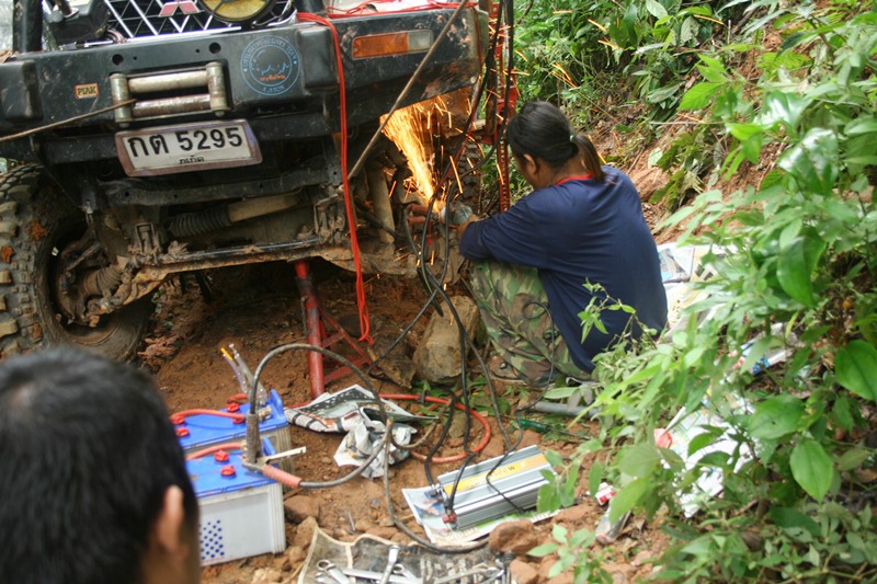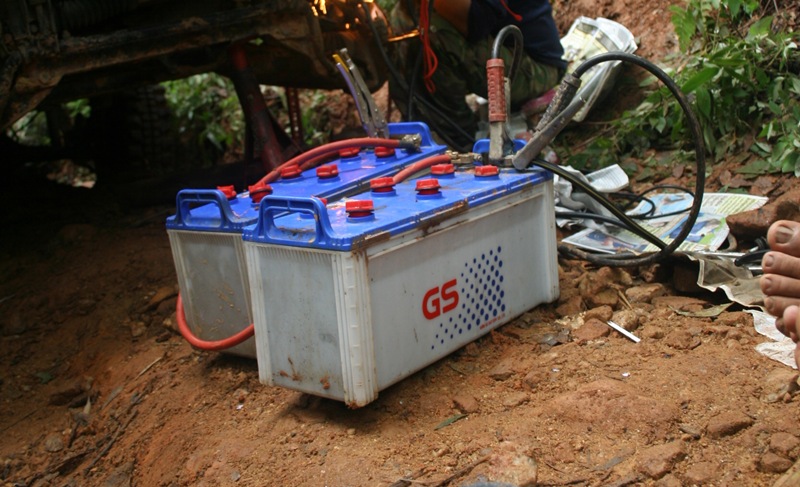 ระหว่างกินข้าวเราคุยกันว่าถ้าได้แบตรถพี่เบ้ง กับ รถน็อตหน้าจะเชื่อมได้ดีกว่าเพราะ 120แอมร์ ได้คำตอบตกลง ก็เลยจัดเครื่องมือและเราให้เนร์ลงมาที่หมู่บ้านเพื่อมาเอาอะไหล่ พี่กบมีธุระ ฮาเร่ต้องไปโรงเรียน เลยเดินลงมากับ เนร์เอ เตี้ย แดง
