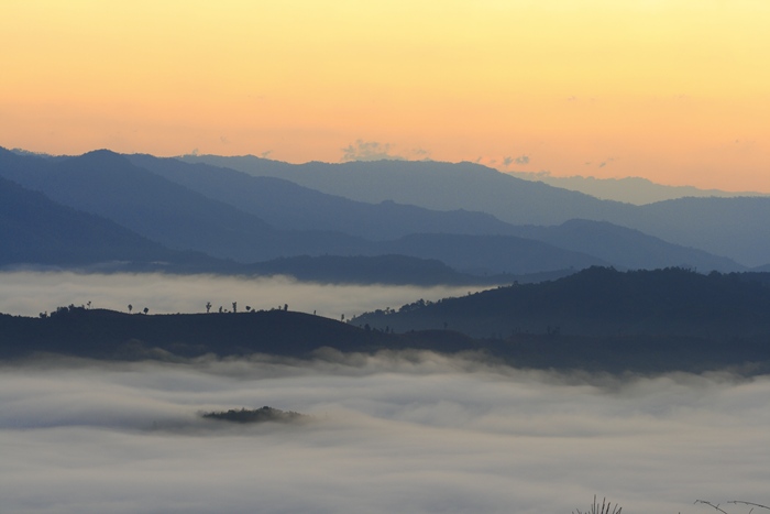เอะ ทำไมเนินเขาเขาฝั่งขวาต้รไม้มันขึ้นเอียงๆอย่างงั้นละ แปลกตาจัง