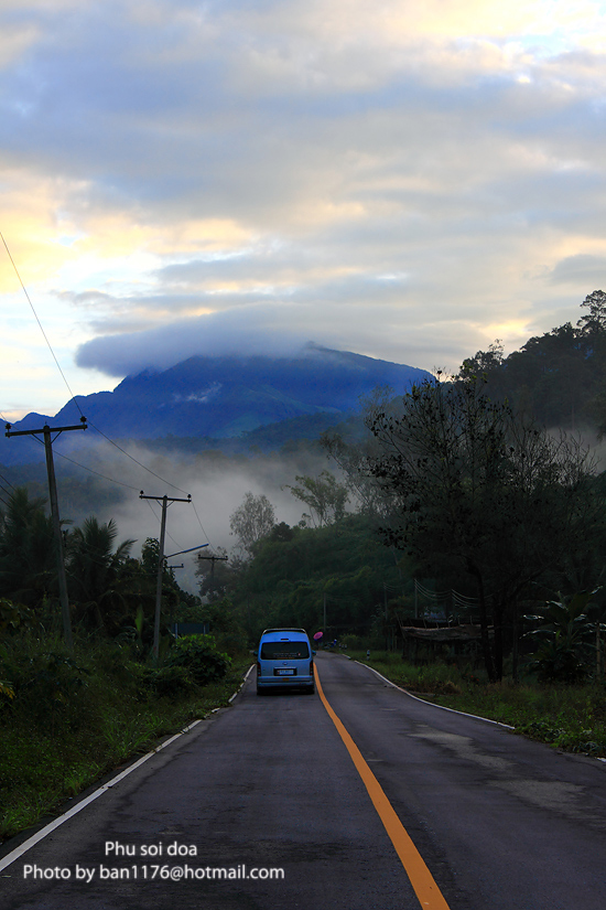 รถตู้พานักท่องป่าไปส่งตีนภูบริเวณน้ำตกภูสอยดาว ยอดสูงๆนั้นรึป่าวนะยอดสูงสุดของภูสอยดาว