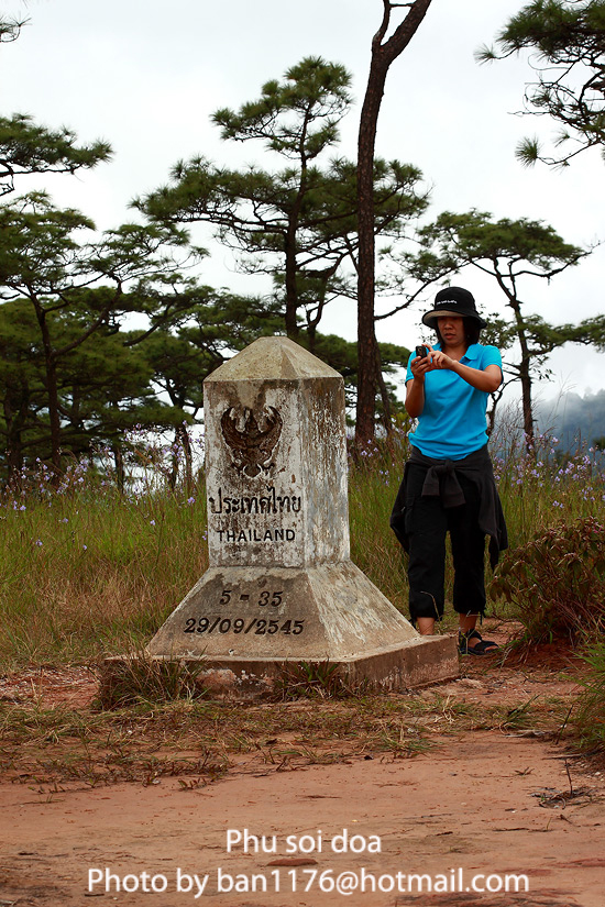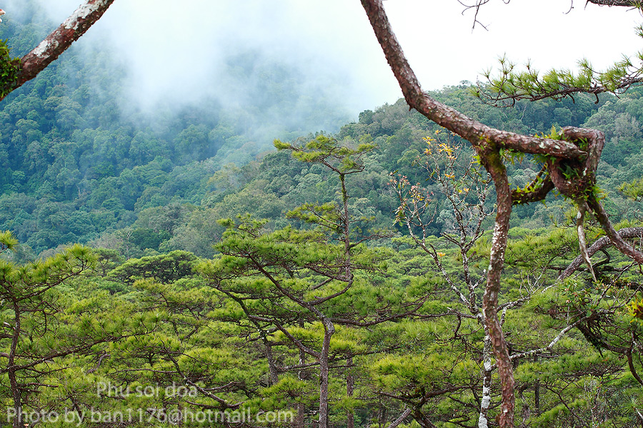 จริงๆแล้วบริเวณลานสนภูสอยดาวนี้ไม่ใช้จุดที่สูงที่สุดของภูสอยดาวนะครับ ยอดสูงสุดอยู่ในฝั่งลาวที่เห็นหมอกปกคลุมอยู่นะครับ แต่ตอนนี้เจ้าหนี้บอกว่าเขาไม่อณุญาติให้เข้า