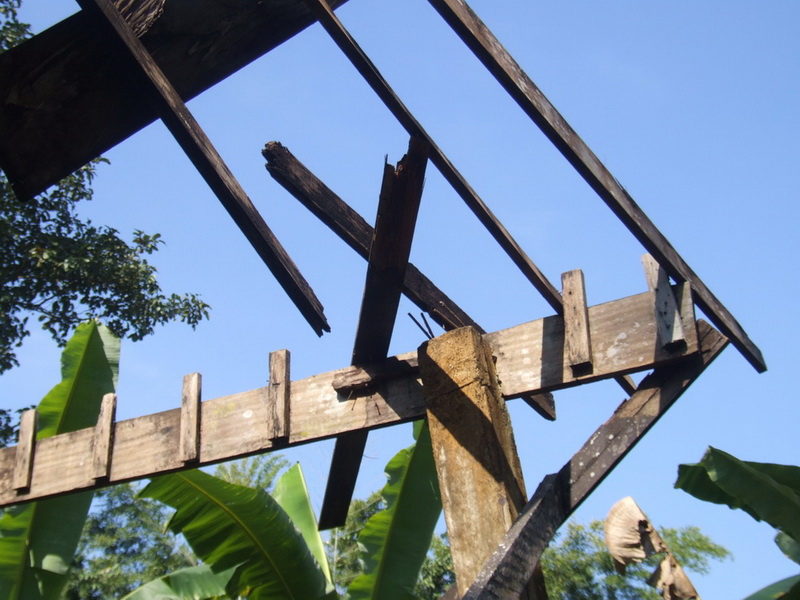 คานไม้ที่รับน้ำหนักของถังเก็บน้ำ รับน้ำหนักไม่อยู่ทำให้ถังน้ำตกลงมาแตก...