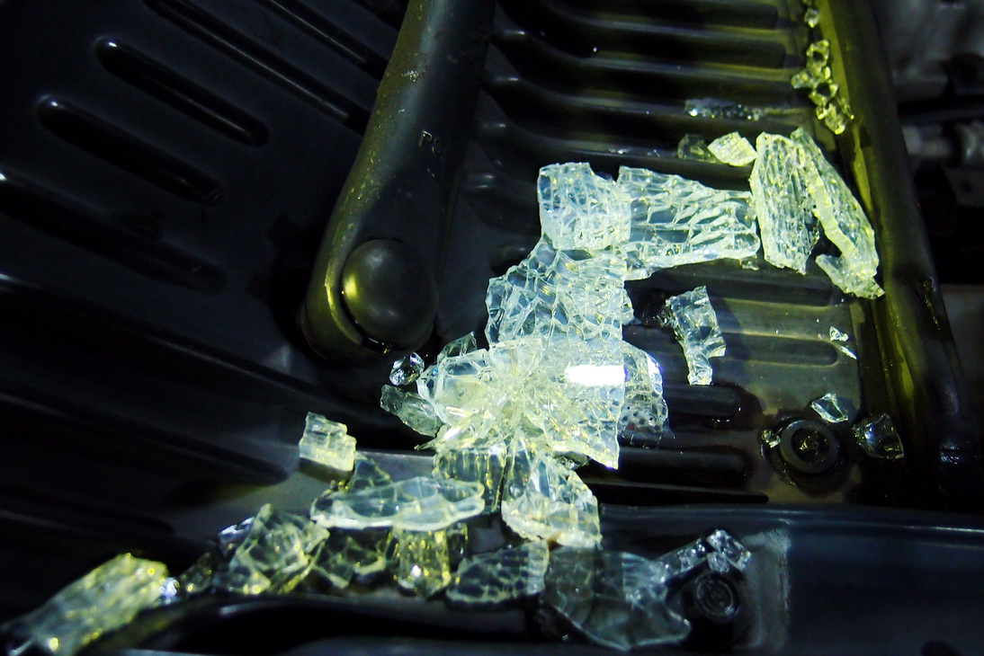 เศษกระจกหลังจากคันหน้าที่ถูกพี่ศัลย์อัด