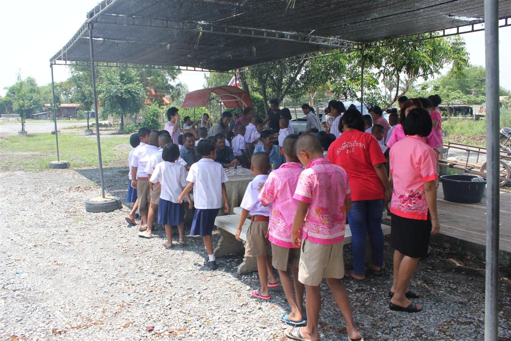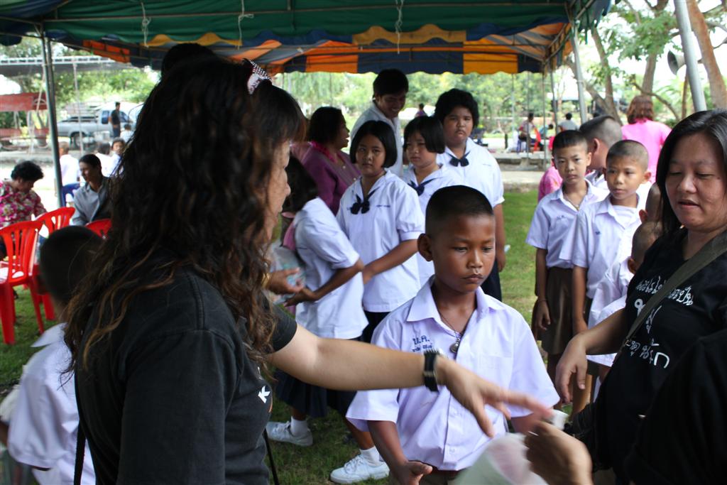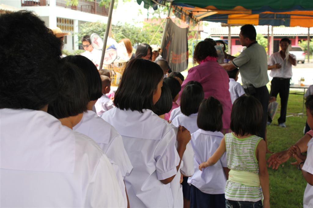 บางส่วนก็แจกของให้นักเรียนแต่ละคนเลย