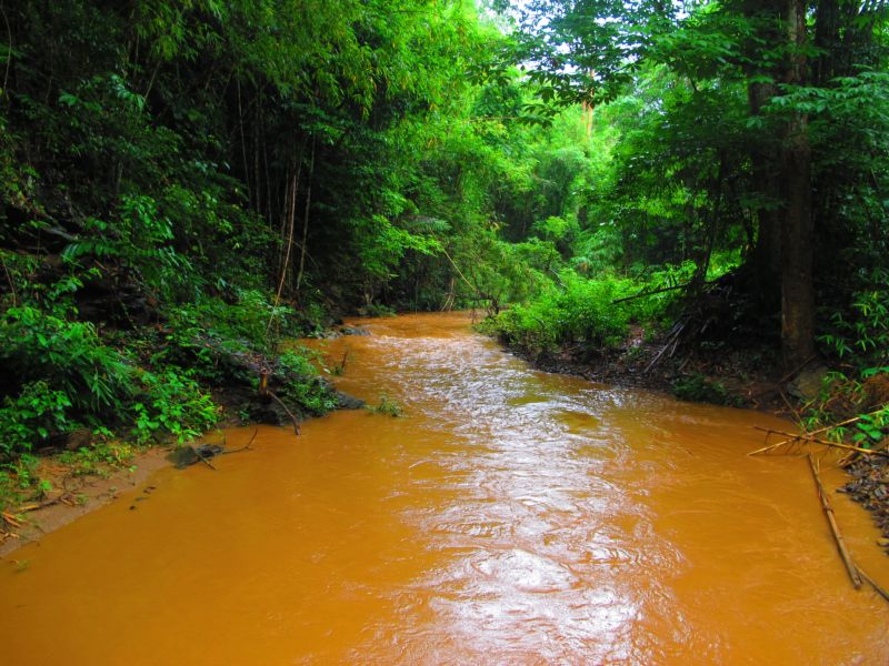 ป่าเขียวน้ำขุ่นในฤดูฝน