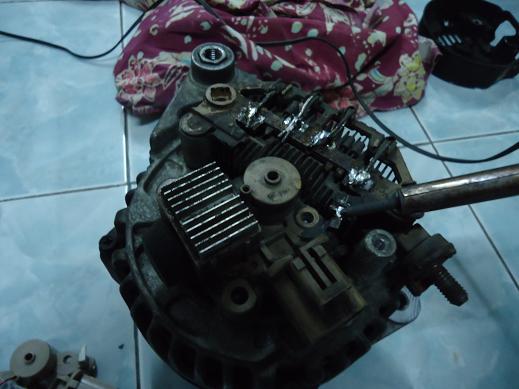 ดูแล้วครับไม่มรอยขีดข่วนขดลวดในโรเตอร์นะครับผม จากนั้นก็ให้ช่างเช็คไดโอดเรคติกฟรายให้ดูคัฟว่าช็อตไหม