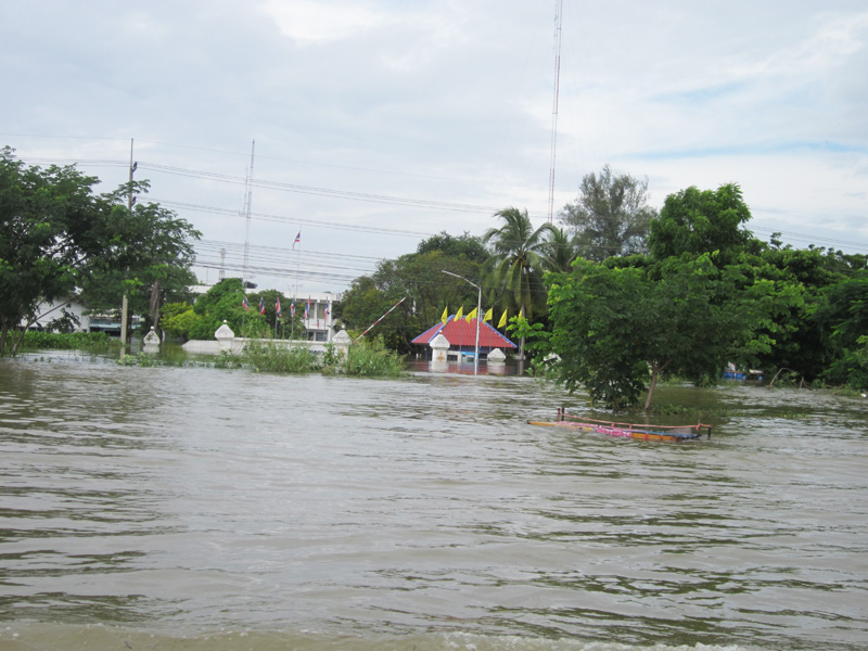 ระดับน้ำข้างทางของถนนสายเอเซียช่วงผ่านบางปะหันไปซักพักนึง