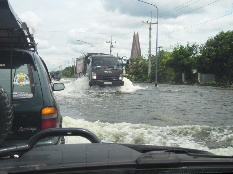 เส้นทางเดินทางจากที่ถามทางหลวงเค้าแนะนำว่าให้ออกทางวังน้อยตลอดทางตอนนั้นปรากฏว่าไม่มีน้ำแต่พอออกสายเอเซียได้นิดเดียวก็เจอน้ำแบบนี้