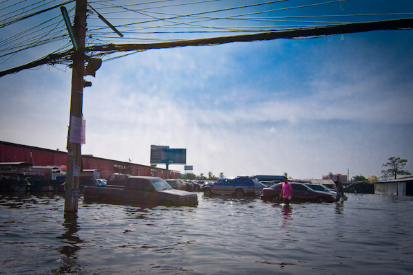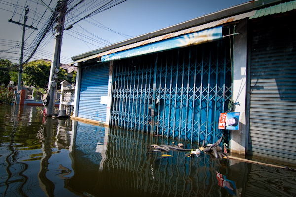 รอบๆบ้าน น้ำยังดำและเหม็นครับ