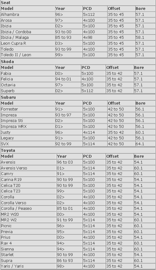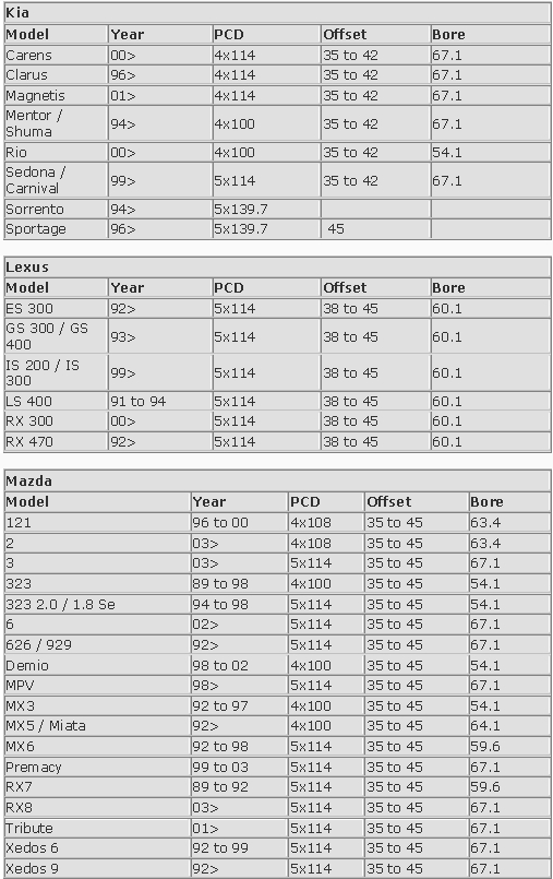 ส่วนตารางด้านล่างรวมรถเล็กด้วยและจะมีค่า offset ของล้อแม็ก