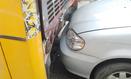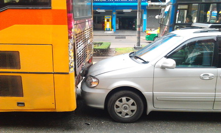 มันหลบและเบรคไม่ทันชนเข้าด้านขวาอย่างแรงดังลั่นรถผมจอดติดไฟแดงอยู่ โดนมันชนจนรถวิ่งไปด้านหน้าเลยทั้งๆที่เหยียบเบรคอยู่