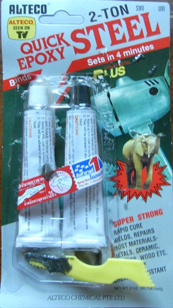 ได้ยินมาว่าไปร้านที่สามารถเชื่อมพลาติกได้ (อู่ซ่อมตัวถัง ) แต่ผมลอง ใช้กาวสองตันซ่อมดู